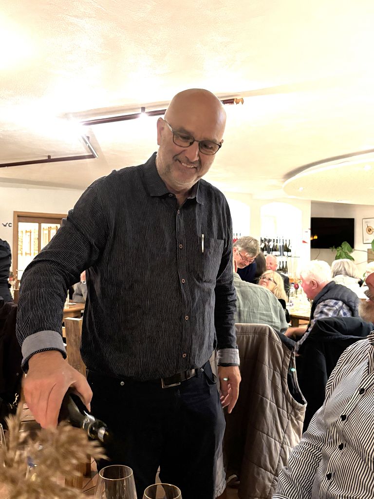 Vorweggesagt: Es wurde dennoch ein gemütlicher Abend, denn WB Axel Schäfer hatte vorgesorgt: Der größte Teil der Besucher saß in der Weinstube, der Rest konnte unter einem riesigen Beduinenzelt auf der Terrasse (mit Heizstrahlern versehen) Platz nehmen.