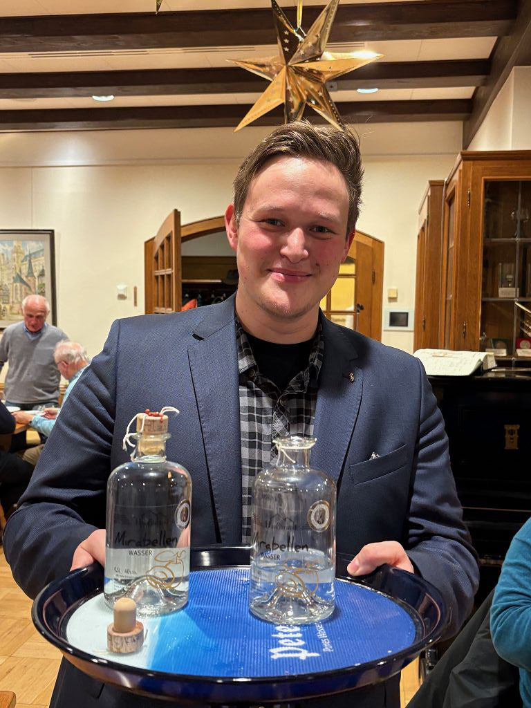 Auf große Zustimmung und passend zu dem hervorragenden (aber üppigen) Menü, stieß ein im Anschluss von unserem Speyerer Weinfreund Joel Lehmann ausgeschenkter Digestif: Ein ausgezeichneter Mirabell aus der Brennerei unseres WB Markus Hauss, passend nicht nur als „Verdauerling“ !