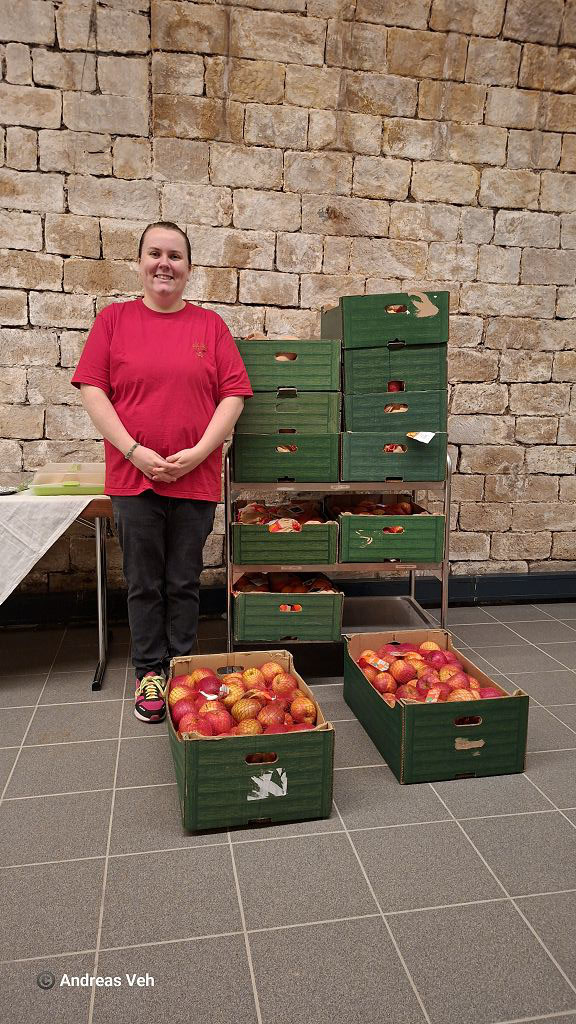 Spontan hatte unser Weinbruder Fritz Hoffmann zur Geschenkübergabe 150 Kilo Äpfel persönlich nach Neustadt gefahren und dadurch ein weiteres Zeichen der Verbundenheit mit dieser Aktion gesetzt.