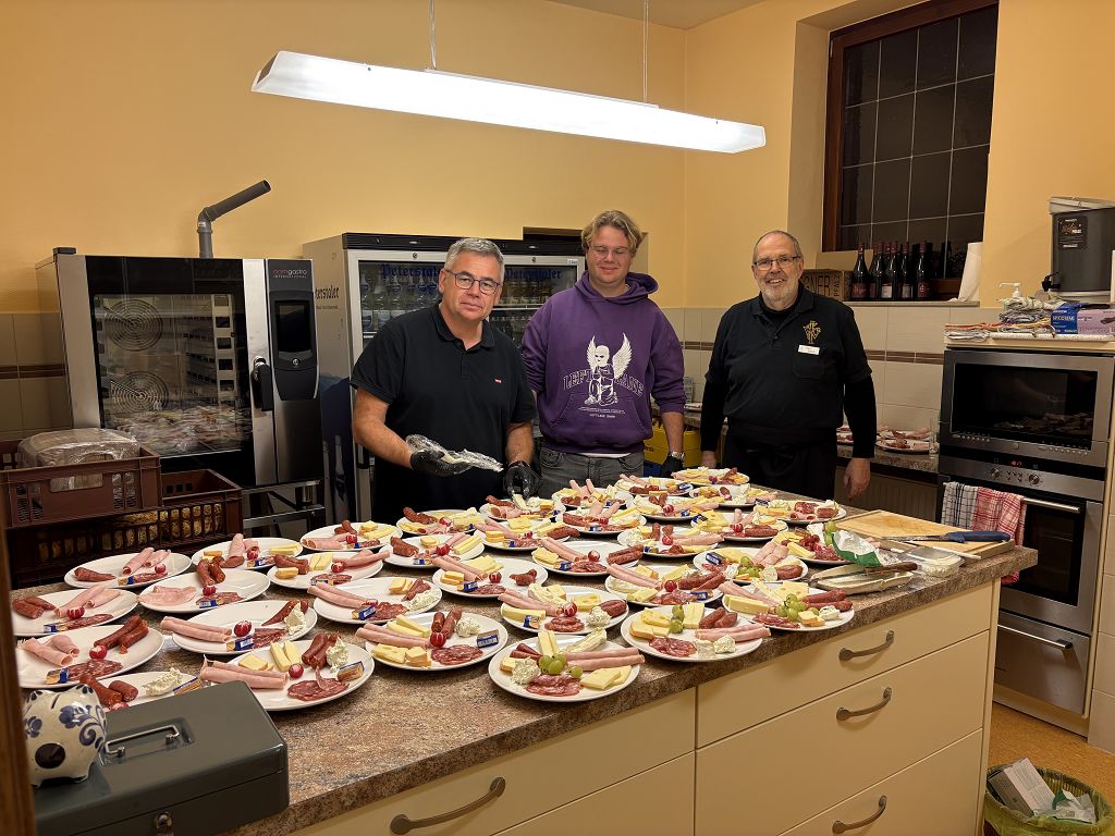 Davon konnten sich die Weinbrüder bei einer anschließenden „Brotprobe“ überzeugen. WB Liebel hatte dazu vier Brotsorten aus der Wasgaubäckerei mitgebracht, die er ausführlich vorstellte: „Maiskrustenbrot“, „Dinkelkastenbrot“ (ein kräftiges Vollkornbrot), „Kosakenbrot“ (Mischbrot) und ein „Tut mir gut Brot“, ein Hafer-Dinkel-Brot, das besonders für Diabetiker geeignet sei und mit einem besonderen Salz aus Formentera zubereitet wird. Zu dem köstlichen Brot hatten unsere fleißigen Ordonnanzen einen dazu passenden, sehr reichhaltigen Wurst-Käse- Teller zubereitet. Beides mundete den Weinbrüdern so gut, dass die Teller und vor allem die Brotkörbe sehr schnell leer waren, wobei man beim Brot auch noch einen „Nachschlag“ erhalten konnte.
