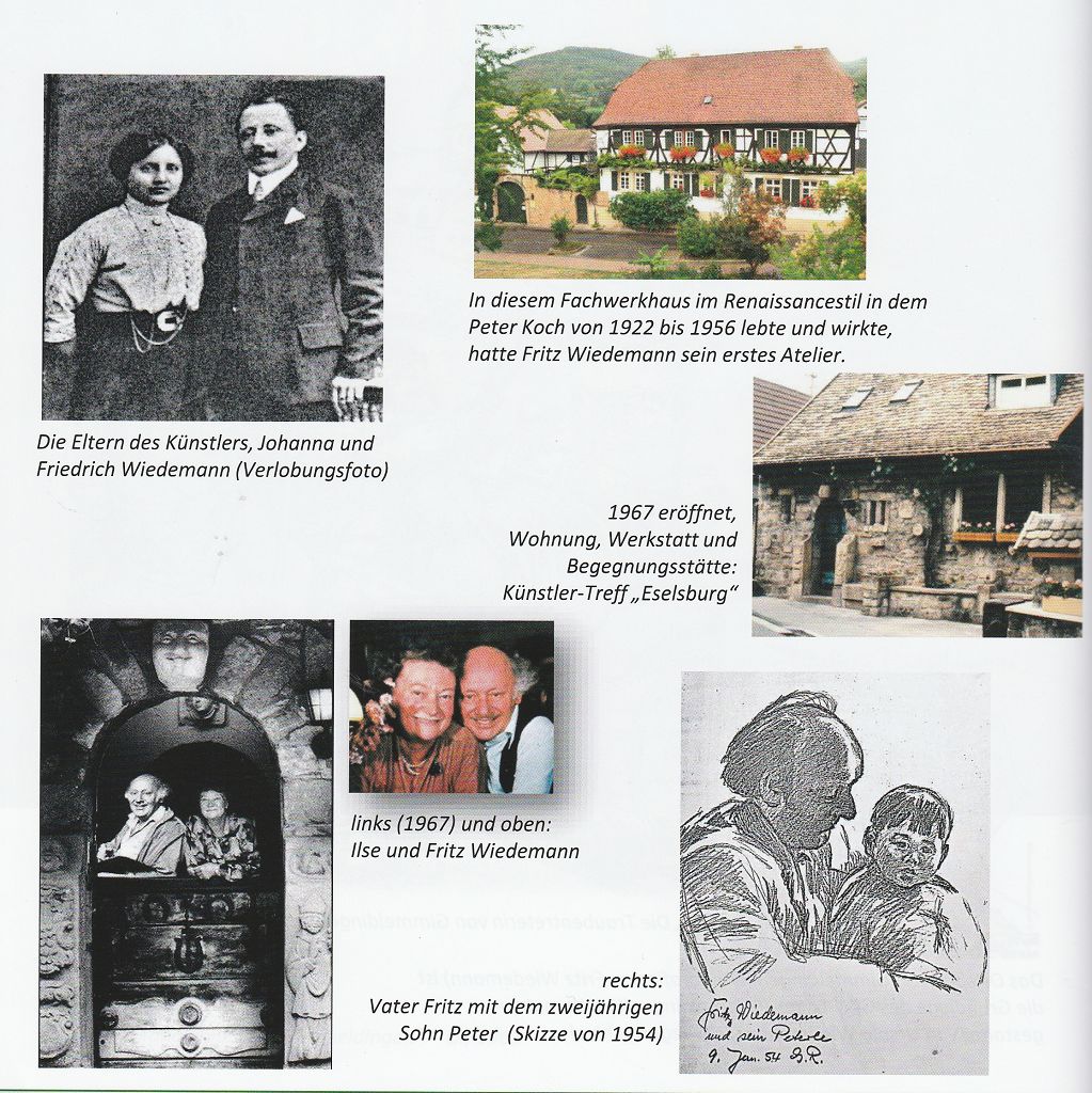 Ein wichtiger Bestandteil des Lebens von Fritz Wiedemann war zweifelsohne die „Eselsburg“ in Mußbach, benannt nach der Mußbacher Großlage. Dieses alte Winzerhaus wurde von ihm liebevoll restauriert und diente ihm während seiner letzten 20 Jahre als Atelier. Außerdem betrieb er darin – zunächst als Hobbykoch, später professionell – eine gleichnamige Weinstube. Zahlreiche anwesende Weinbrüder erinnerten sich nur zu gerne an schöne Stunden bei Gesprächen, Gesang und vor allem guten Wein in den phantastisch mit expressionistischen Bildern und skurrilen Figuren ausgestatteten Räumlichkeiten. Die Eselsburg entwickelte sich auch immer mehr zu einem Künstlerlokal, in dem bekannte Persönlichkeiten, wie z.B.: Erika Köth, Roberto Blanco oder Kurt Dehn bald zu den Stammgästen zählten.