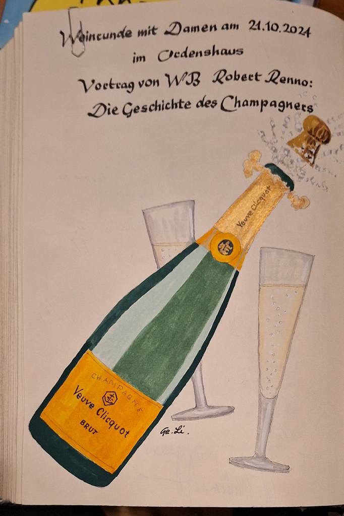 Durch seine humorvolle Art, durch den Einbau anschaulicher Bilder und passender Anekdoten verstand es WB Renno, seinen Vortrag überaus lebendig und spannend zu gestalten. Dazu trugen auch Hinweise und kleine Geschichten zu Deutschlands „Beziehungen“ zum Champagner bei (z.B. Sektsteuer von Kaiser Wilhelm II, Champagner-Paragraph im Versailler Vertrag und Beschlagnahme riesiger Mengen von Champagner durch die deutsche Wehrmacht während des 2.Weltkriegs).