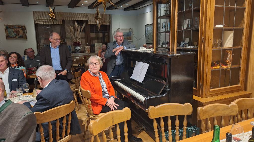 Passend zur Thematik und zur zusätzlichen Unterhaltung der über 70 Anwesenden trug unser „Musikus“ Fritz Kauth das Lied „Das war der Zwerg Perkeo“ von Josef Viktor von Scheffel vor. Begleitet wurde er dabei am Klavier von Maria Seifert, der Gattin unseres geschätzten Weinbruders Eckhart Seifert.