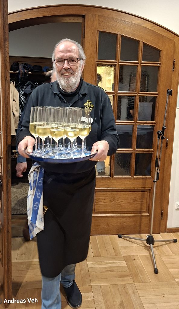 In seiner Begrüßungsansprache, zu der der exzellente und mehrfach prämierte Rieslingsekt von WB Thomas Steigelmann , sowie leckere Lachscanapés gereicht wurden, ließ unser Ordensmeister nochmals die Höhepunkte des abgelaufenen Jahres Revue passieren. Anschließend bedankte er sich namentlich bei allen ehrenamtlichen Helfern für die geleisteten Arbeiten im vergangenen Jahr. Auch in diesem Jahr lobte er den Gemeinschaftssinn und das Zusammengehörigkeitsgefühl innerhalb unserer Weinbruderschaft.